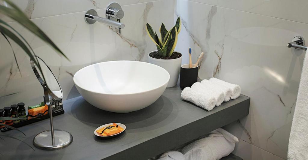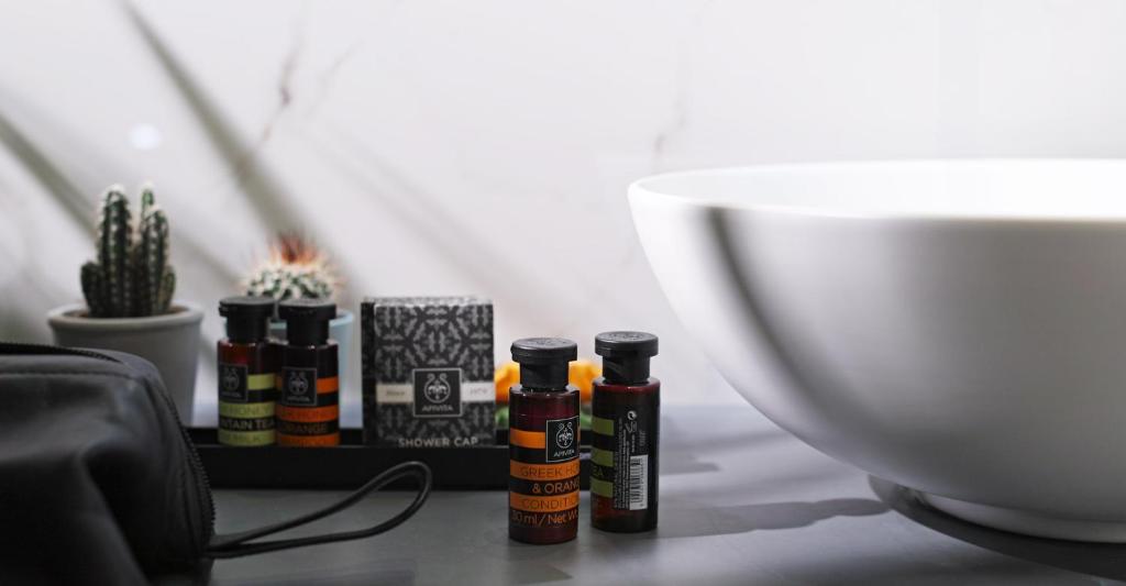 Le camere sono concepite all'insegna del lusso funzionale e del comfort assoluto. Letti sontuosi e lenzuola pregiate garantiscono un sonno ristoratore. Godetevi la vostra macchina da caffè Nespresso e coccolatevi con i prodotti per la cura della pelle Apivita , tra gli altri comfort. Le camere sono dotate di doppi vetri insonorizzati. La cabina doccia a pioggia, in un bagno parzialmente aperto, massimizza lo spazio e la luminosità.