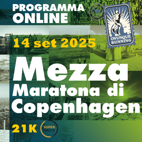 Ovunque Running ti invita il 14 SETTEMBRE 2025 a correre la MEZZA MARATONA DI COPENHAGEN (circuito SUPERHALFS).
